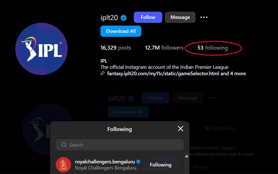 Fact Check: Did IPPL unfollow RCB on Instagram? (Source: IPL/Instagram) Royal Challengers Bangalore (RCB) Historic Madeen Indian Premier League (IPL)…