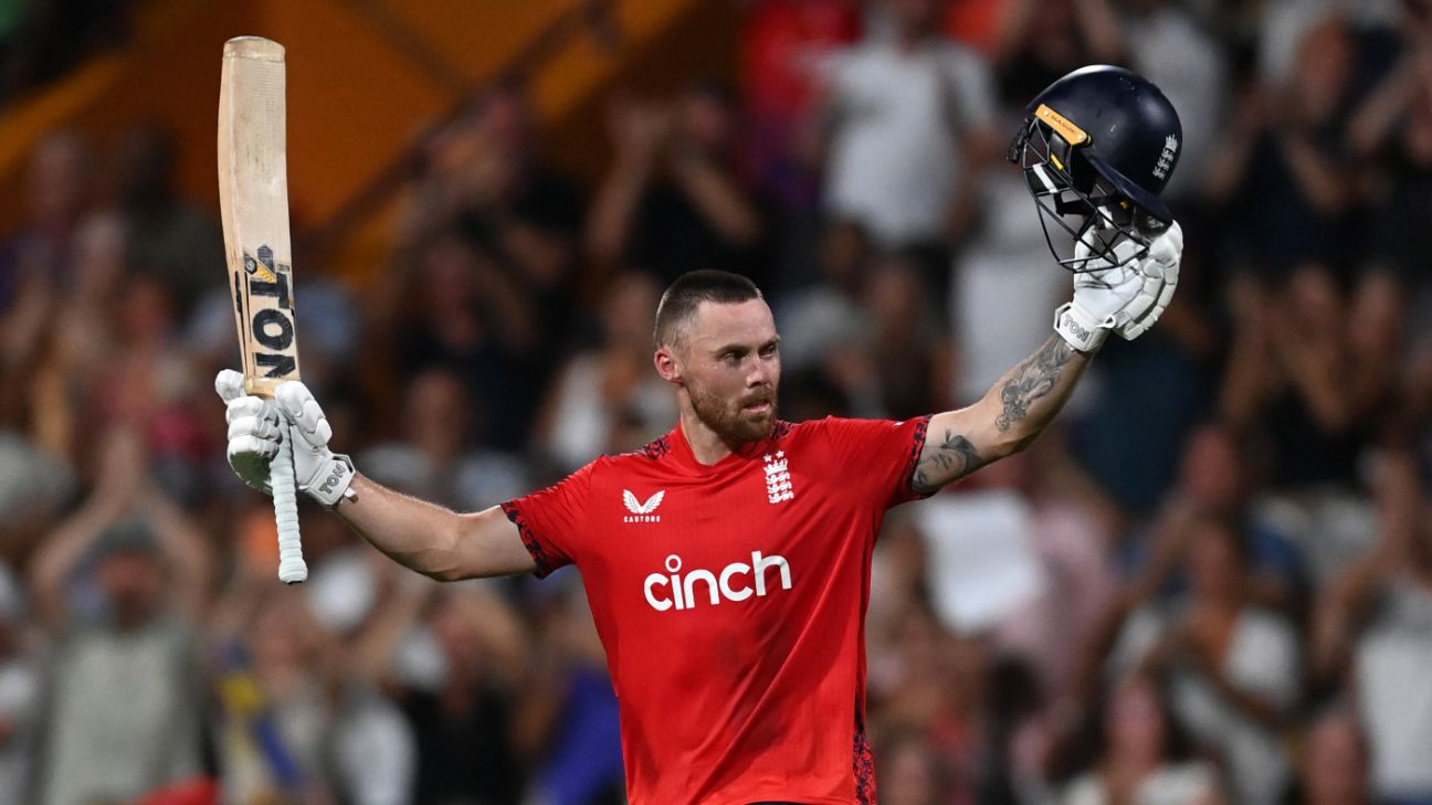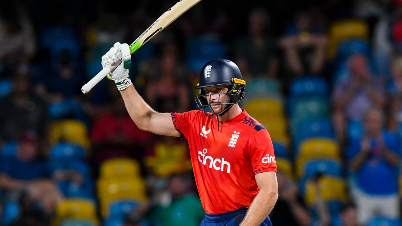 England 183 for 2 (Salt 103*, Bethell 58*) beat West Indies 182 for 9 (Pooran 38, Shepherd 35*, Motie 33,…